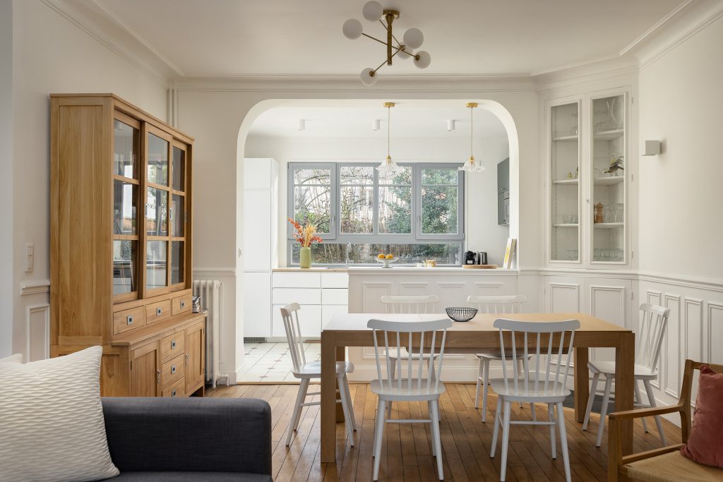 Petite maison de ville située sur la commune du Chesnay. Le maître d’ouvrage souhaitait engager une rénovation chirurgicale des espaces. L’ensemble des travaux a été réalisé par NUGERY, en étroite collaboration avec l’architecte Armel Joly.